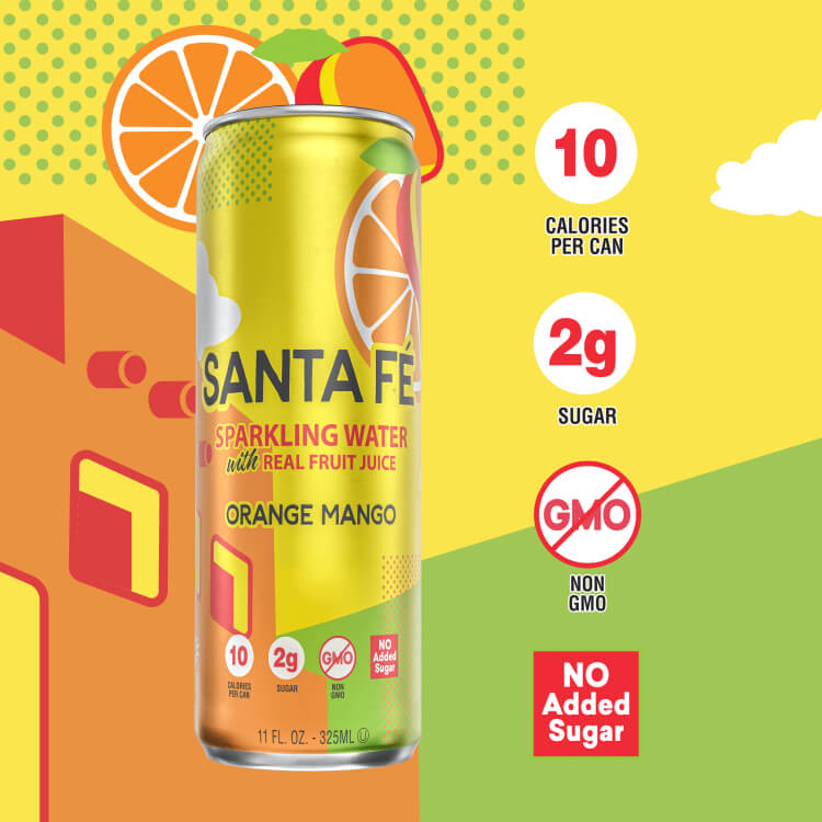 Fizzy water with a fruity kick of velvety mango and juicy, sun-kissed orange.