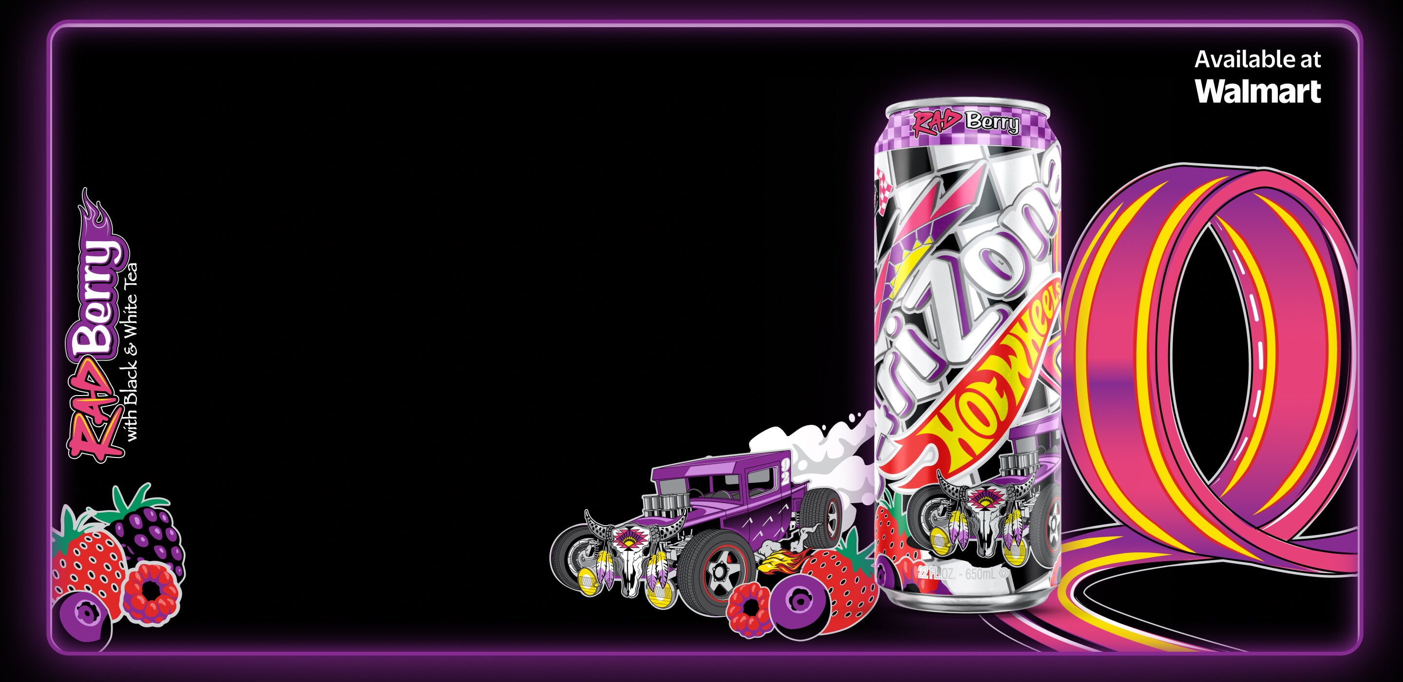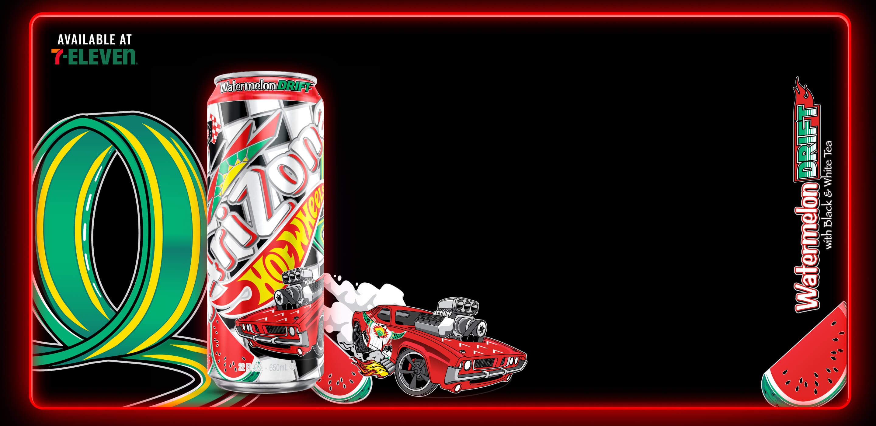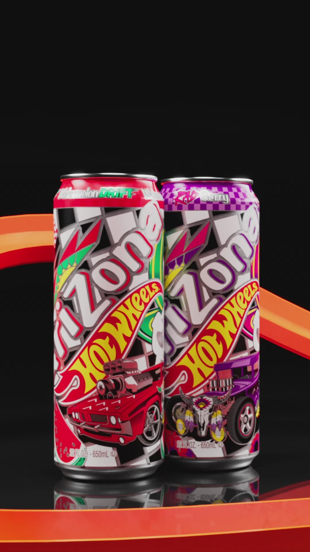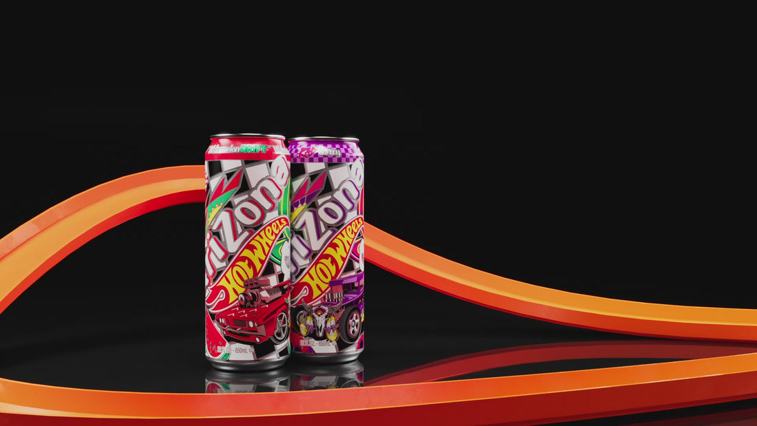 Strap in for a charged-up collaboration, AriZona x Hot Wheels™ delivers two Big Cans featuring a flavor collision of black and white tea with real juice. Take a tasty ride with Rad Berry, sweetened by dark berry notes for a punchy tea and Watermelon Drift highlighting tart and tropical fruits.