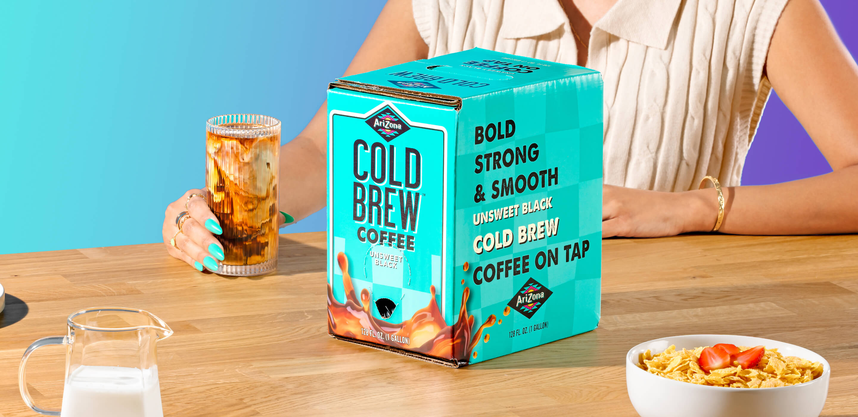 Crafted of cold-steeped Arabica beans, Cold Brew Coffee on tap brings bold flavor right to your fridge. Savor the deeply-rich taste and robust body of AriZona's first unsweetened black coffee—simply pour over ice and enjoy.