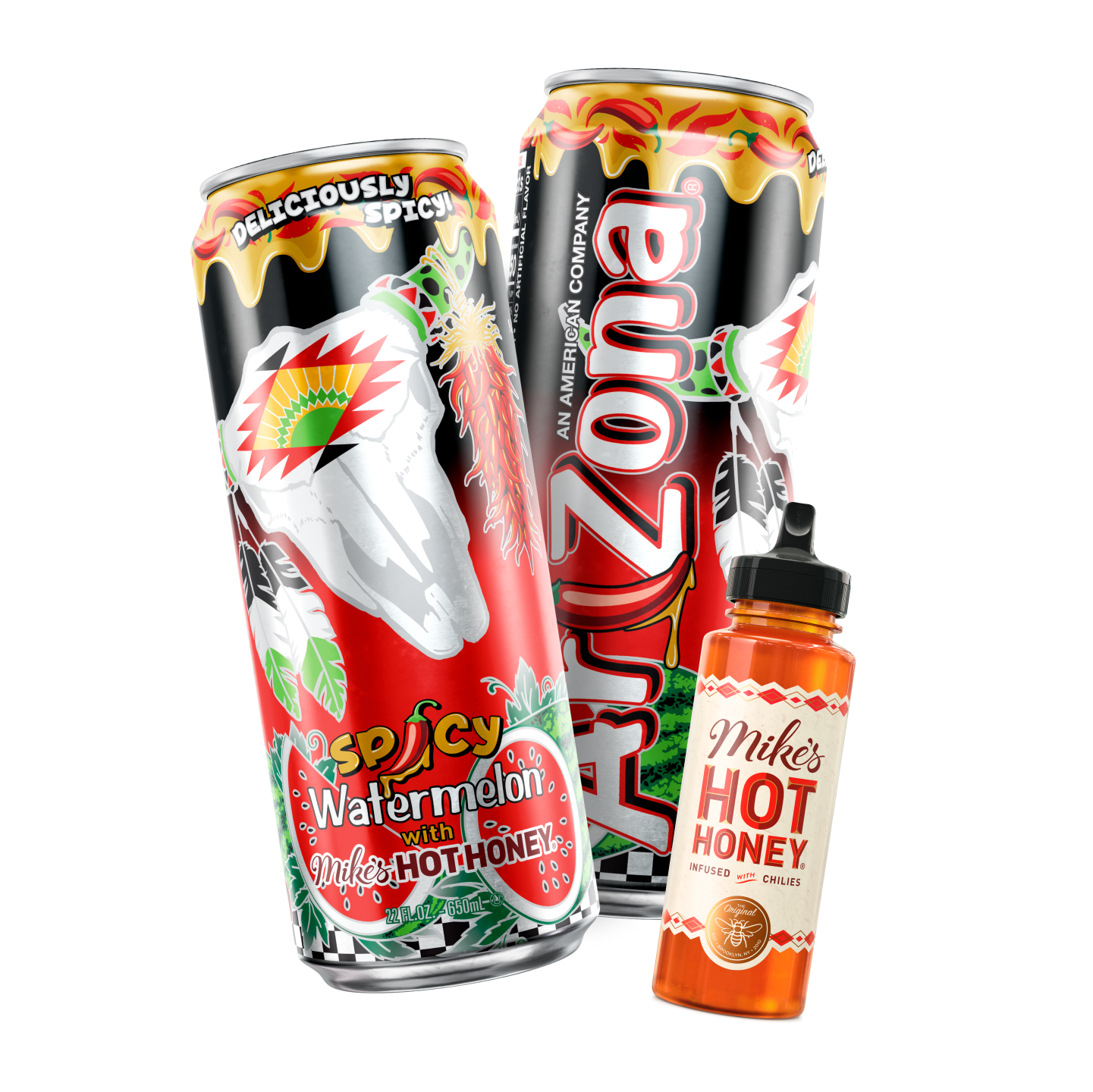 AriZona x Mike's Hot Honey®. Fusing fiery honey flavor with the classic taste of a beloved bev, Spicy Watermelon Juice Cocktail is made with real fruit and brings sweet heat to each sip.