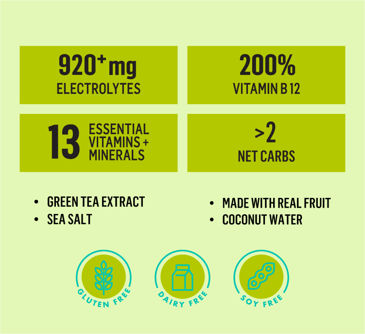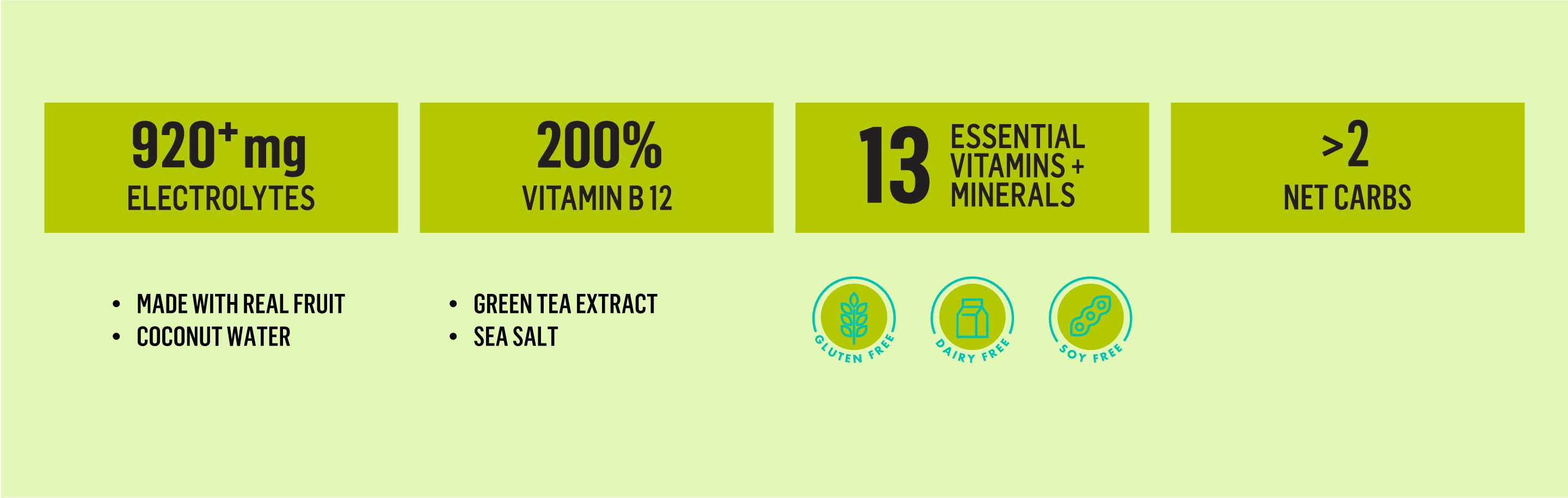 An invigorating formula of 13 essential vitamins and minerals blended with freeze-dried fruit, RXMD Hydration Stix replenish your body with up to 930 mg of electrolytes, 70 mg of magnesium, 200% daily value of B12, and no added sugar.