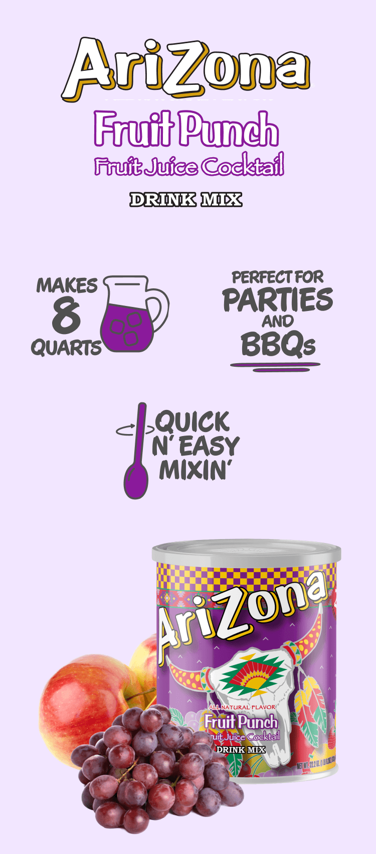Gather around an ice-cold pitcher of refreshing Fruit Punch made from this 22.2 oz. powder mix.