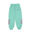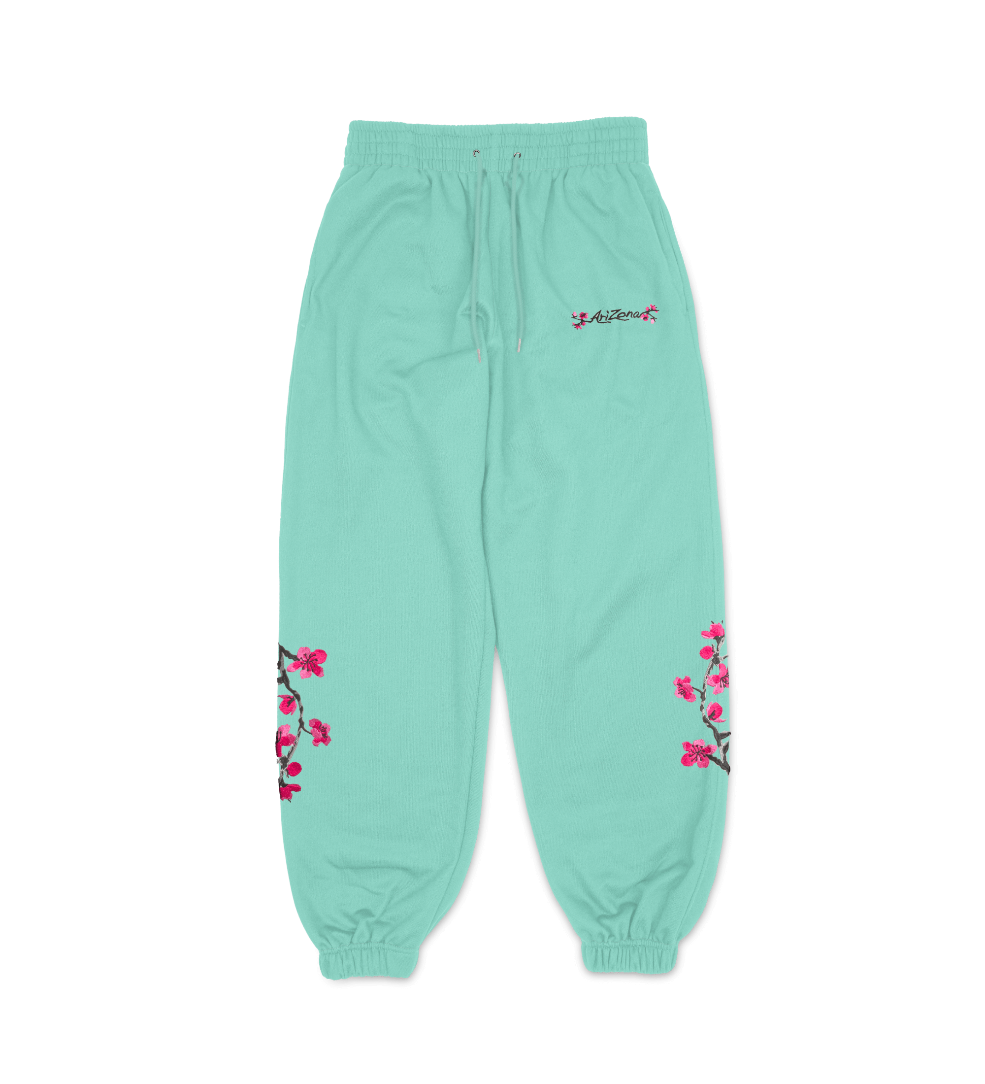 Teal Cherry Blossom-Embroidered Cotton Sweatpants