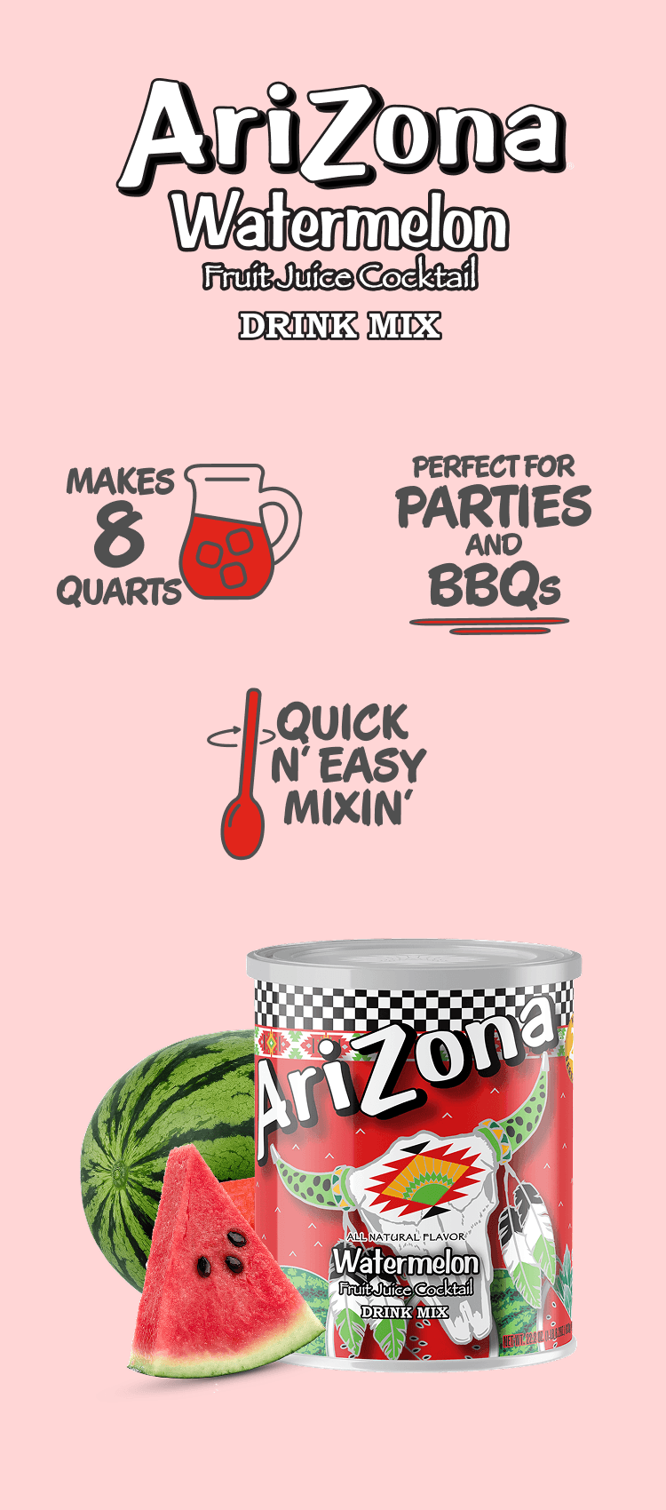 Gather around an ice-cold pitcher of refreshing Watermelon made from this 22.2 oz. powder mix.